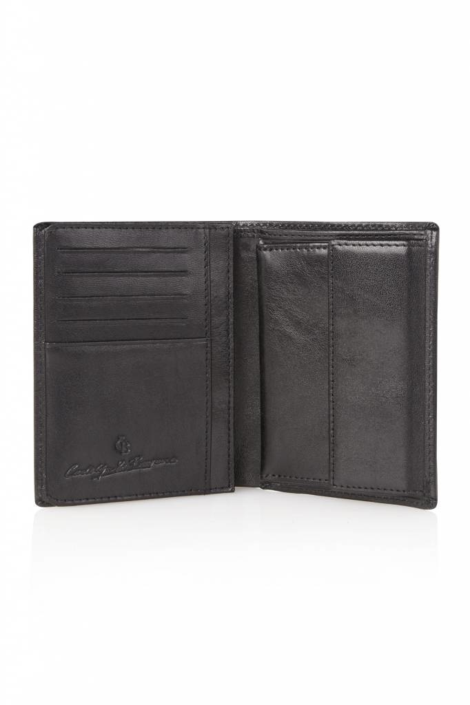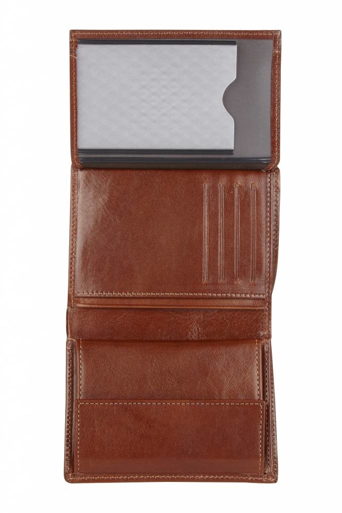 Zeer praktische leren RFID billfold portefeuille met voldoende ruimte voor papiergeld en een apart vakje voor het kleingeld. De leren herenportemonnee is daarnaast voorzien van 9 creditcardvakjes en een apart rijbewijs-vakje.