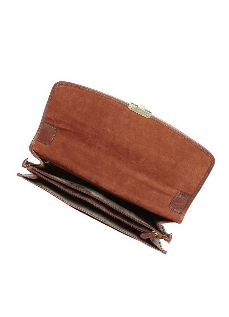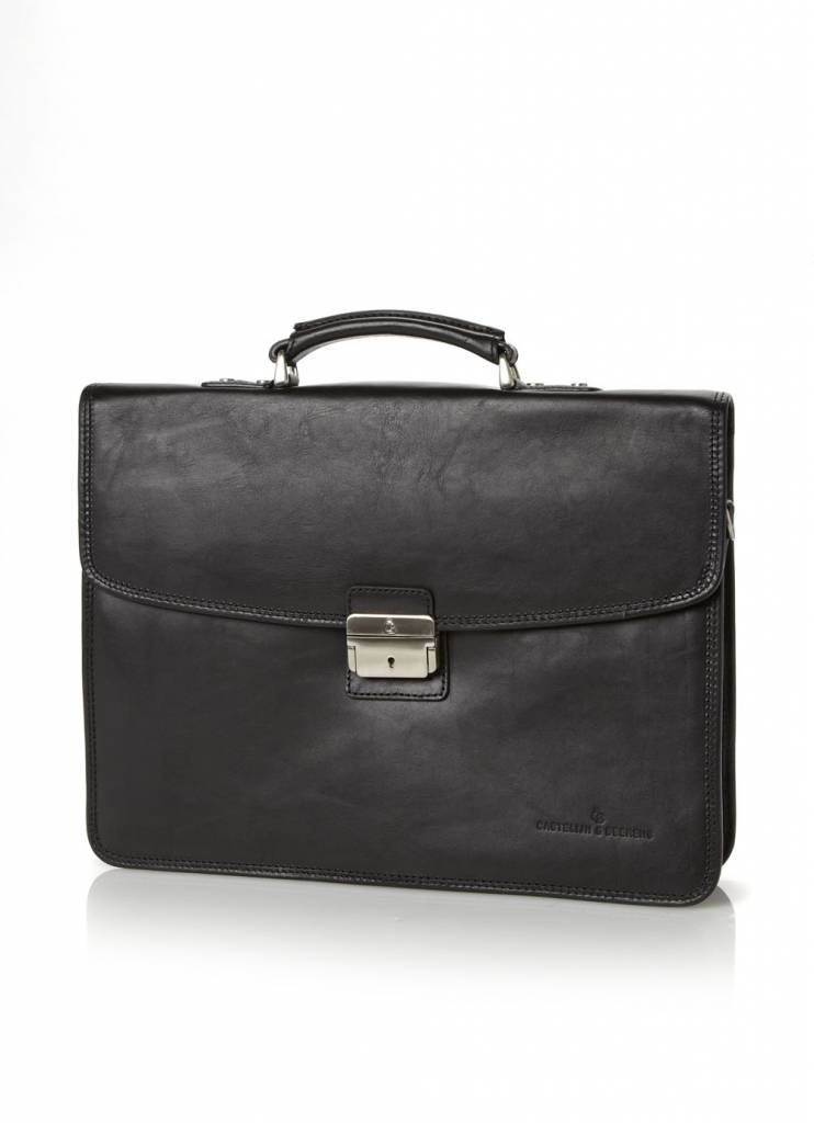 Stijlvolle leren aktetas met twee ruime vakken die worden gescheiden door een verstevigd vak voor een tablet of 13,3” laptop. De luxe laptoptas heeft een stevig handvat en is voorzien van een afneembare en verstelbare schouderriem. Deze leren laptoptas uit de Verona-serie is gemaakt van prachtige Italiaanse runderhuid. Het C&B-logo is subtiel als blinddruk verwerkt. De leren aktetas is verkrijgbaar in de kleuren zwart, mocca en lichtbruin.