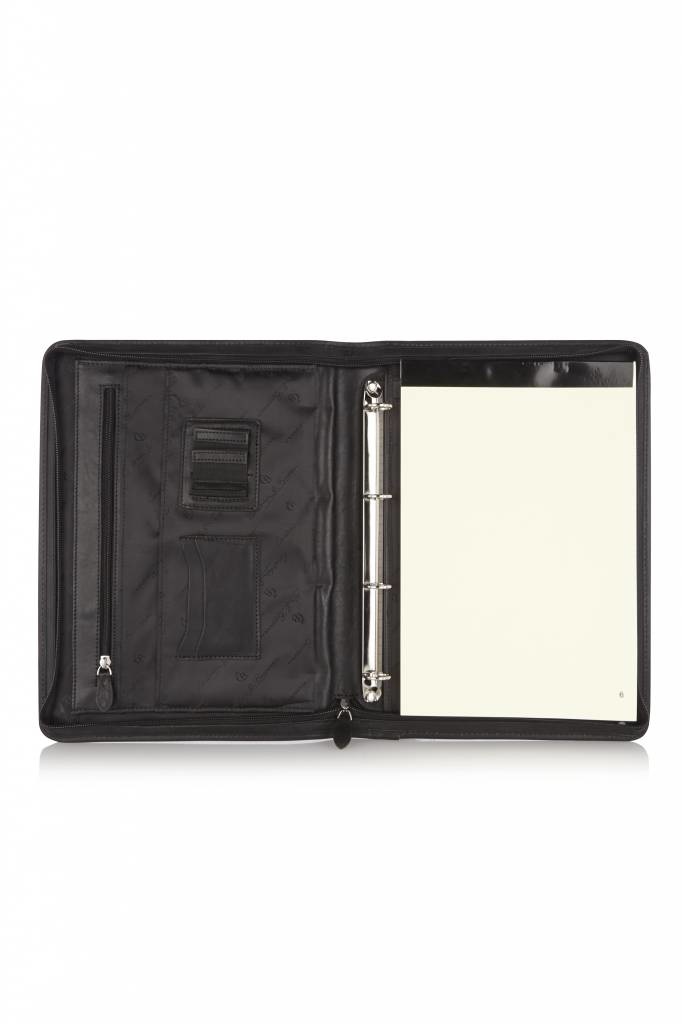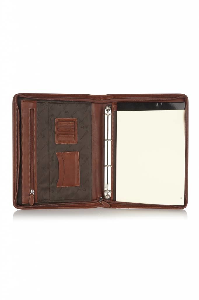 Praktische, fraai uitgevoerde lederen A4-schrijfmap met een ringband en een ritssluiting. De luxe schrijfmap heeft een binnenvak met rits en is voorzien van diverse insteekvakjes voor pasjes, creditcards en visitekaartjes. De luxe, leren schrijfmappen en laptop tassen uit de stijlvolle Verona collectie zijn gemaakt van stevig Italiaans stierenleer. Het C&B-logo is subtiel als blinddruk verwerkt. De luxe leren schrijfmap is verkrijgbaar in de kleuren zwart, mocca en lichtbruin.