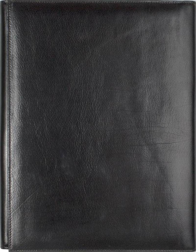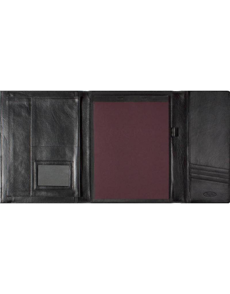 Prachtige stijlvolle zwart lederen A4 schrijfmap; wordt geleverd met een gratis schrijfblokmet ongelinieerd crème-kleurig papier. De map heeft ook extra opbergvakken.