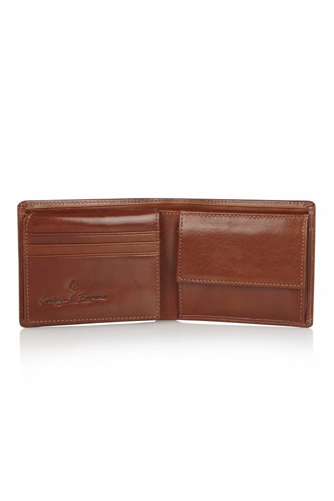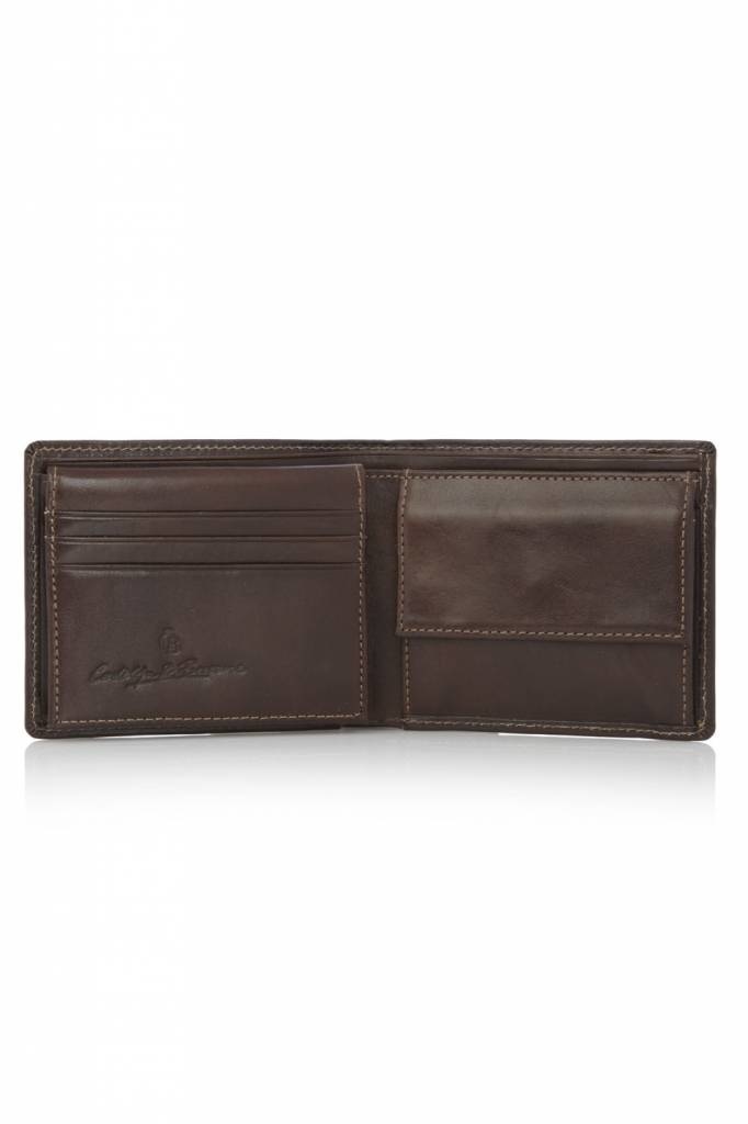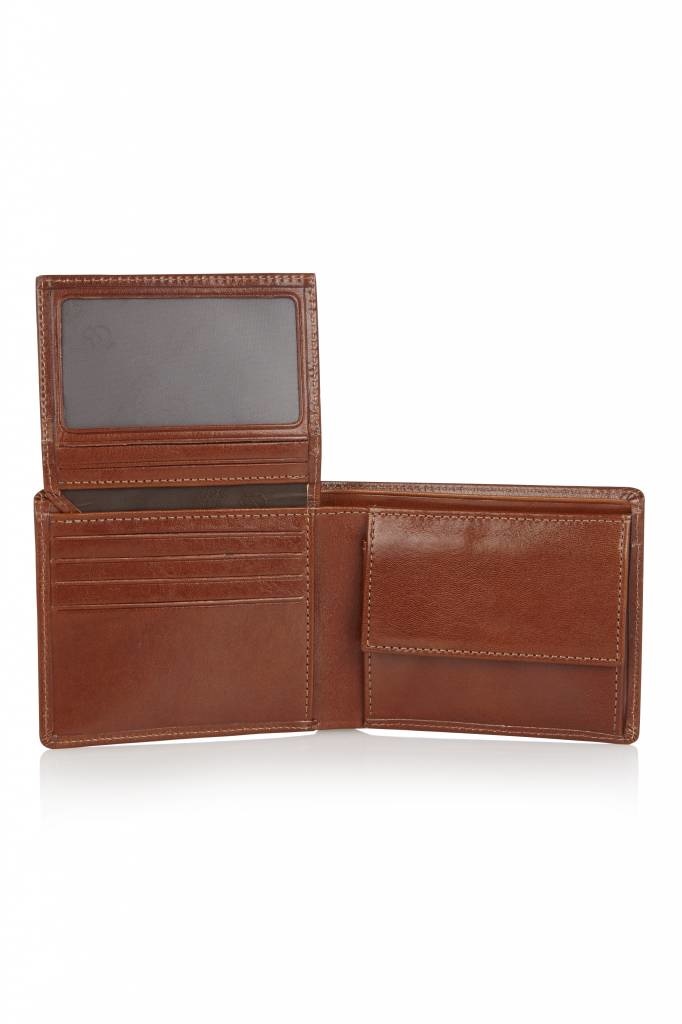 Stijlvolle leren RFID billfold portefeuille in een handzaam formaat met vakken voor papiergeld en een vakje voor kleingeld. De leren herenportemonnee heeft daarnaast 9 creditcardvakjes, deels uitklapbaar.