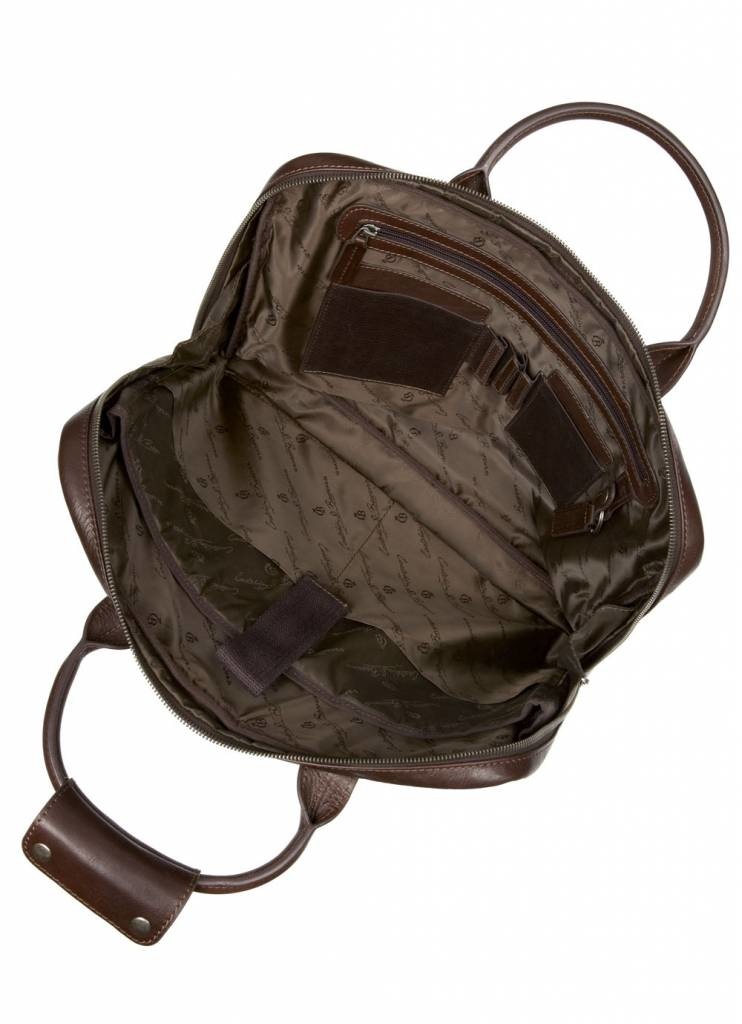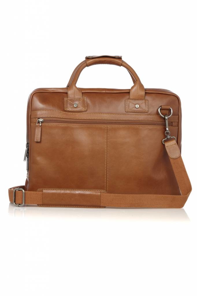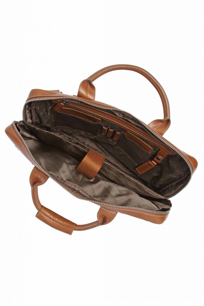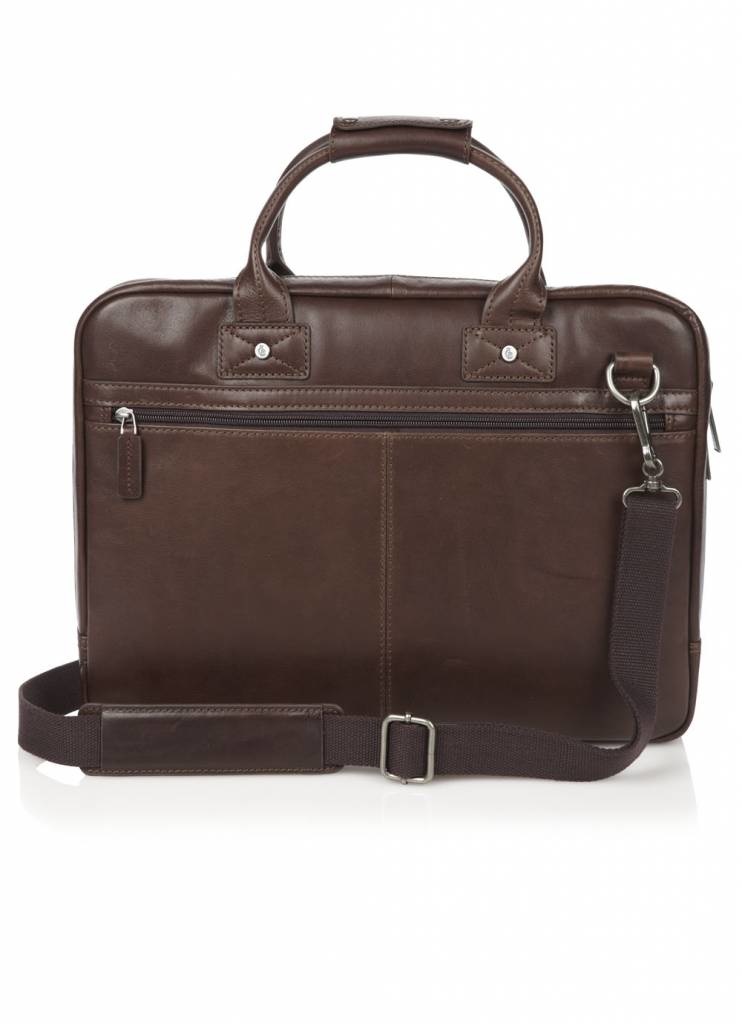Leren businesstas, voorzien van een verstevigd 15,6” vak voor laptop of tablet, diverse ritsvakken en een praktisch organiser gedeelte voor telefoon, pennen, visitekaartjes etc. Dankzij de afneembare en verstelbare schouderband én de trolleyband is de laptoptas erg geschikt voor zakenreizen.