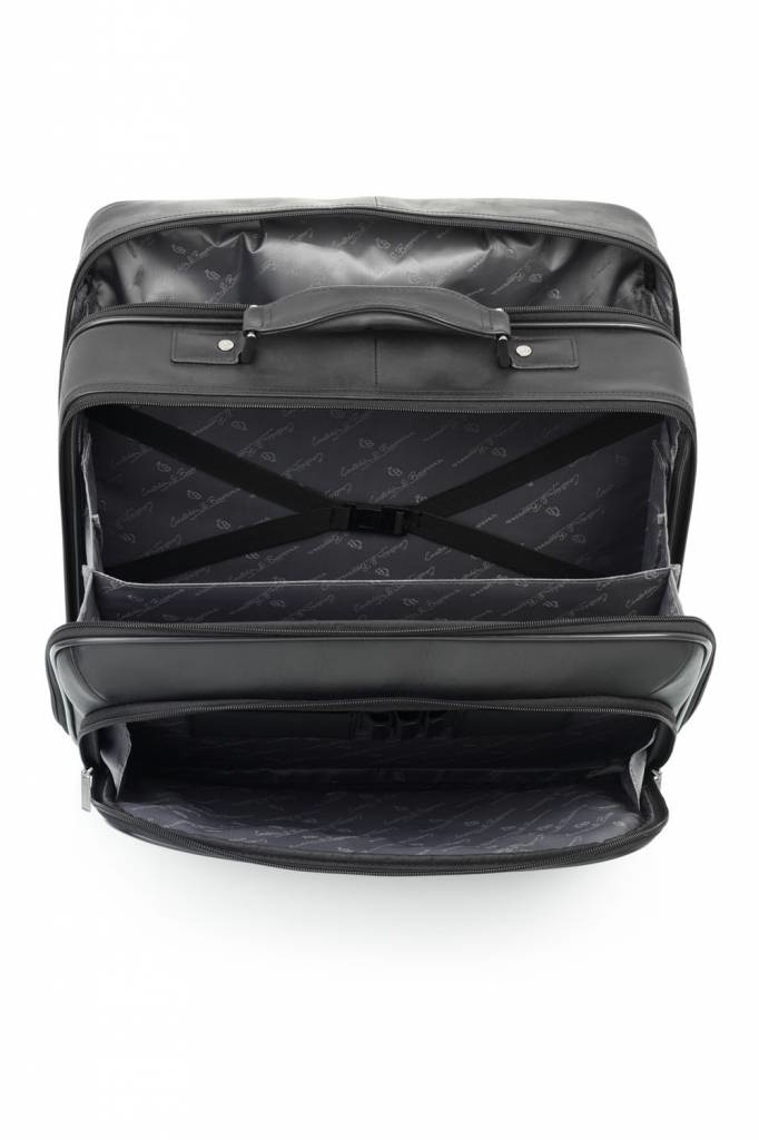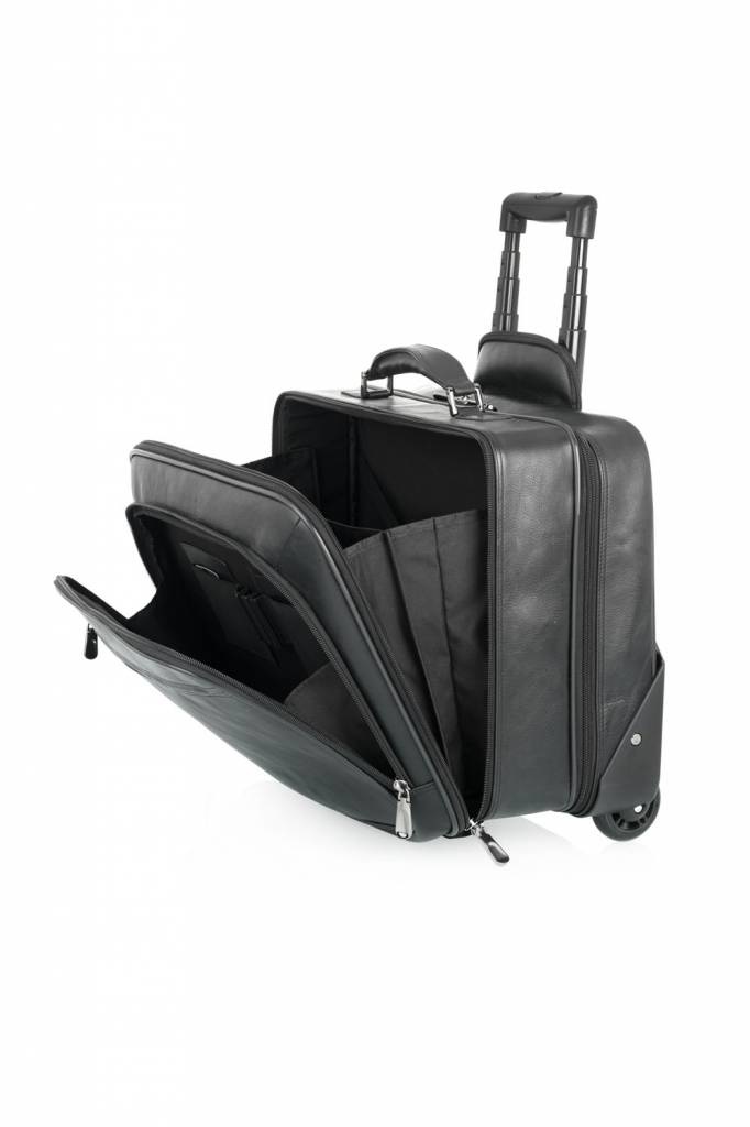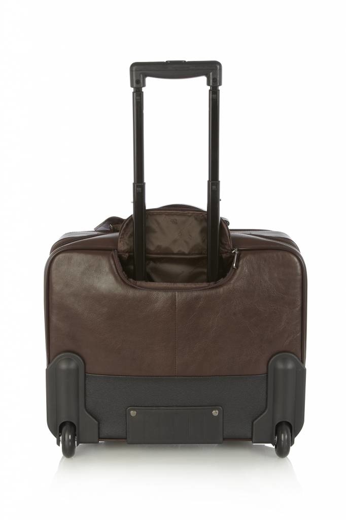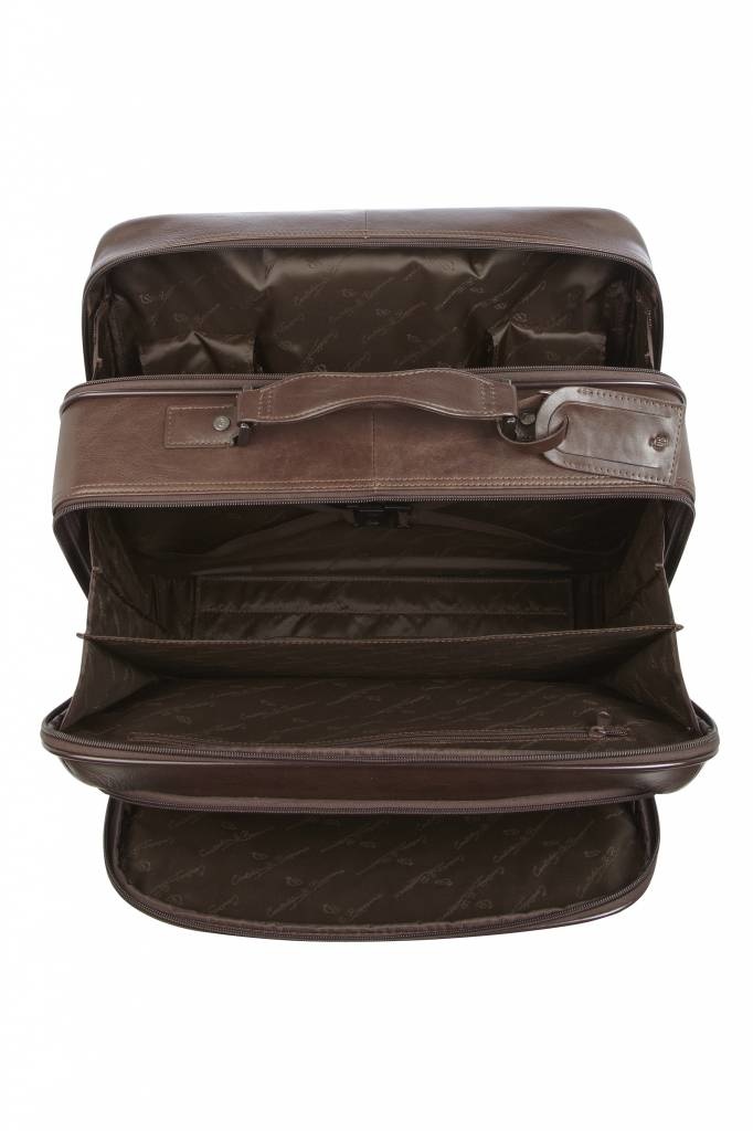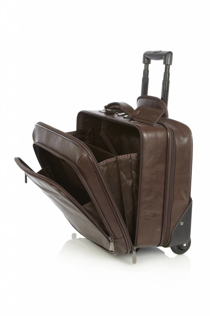 Leren laptop trolley, ideaal voor korte business-trips en geschikt als handbagage voor de meeste airlines. De leren trolley is voorzien van een 15,6” laptopvak, een kledingvak, diverse documentvakken en een praktisch organiser gedeelte voor telefoon, paspoort en pennen. Deze luxe trolley uit de Firenze Business-serie is gemaakt van prachtige Italiaanse runderhuid met een natuurlijke uitstraling en ietwat vettige touch. Het C&B kwaliteitslogo is middels präg subtiel in het leer verwerkt. De luxe leren business trolley is verkrijgbaar in de kleuren zwart en mocca. Het Italiaanse leer is duurzaam gelooid volgens richtlijnen van de Leather Working Group.