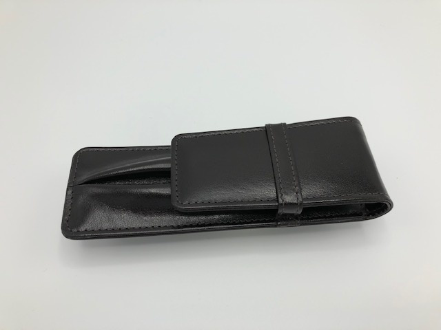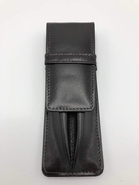 Leren pennenhoes met twee extra inkepingen om de sluiting van de dop erdoorheen te kunnen doen. Geschikt voor twee pennen. Exclusief verkrijgbaar in het donkerbruin.