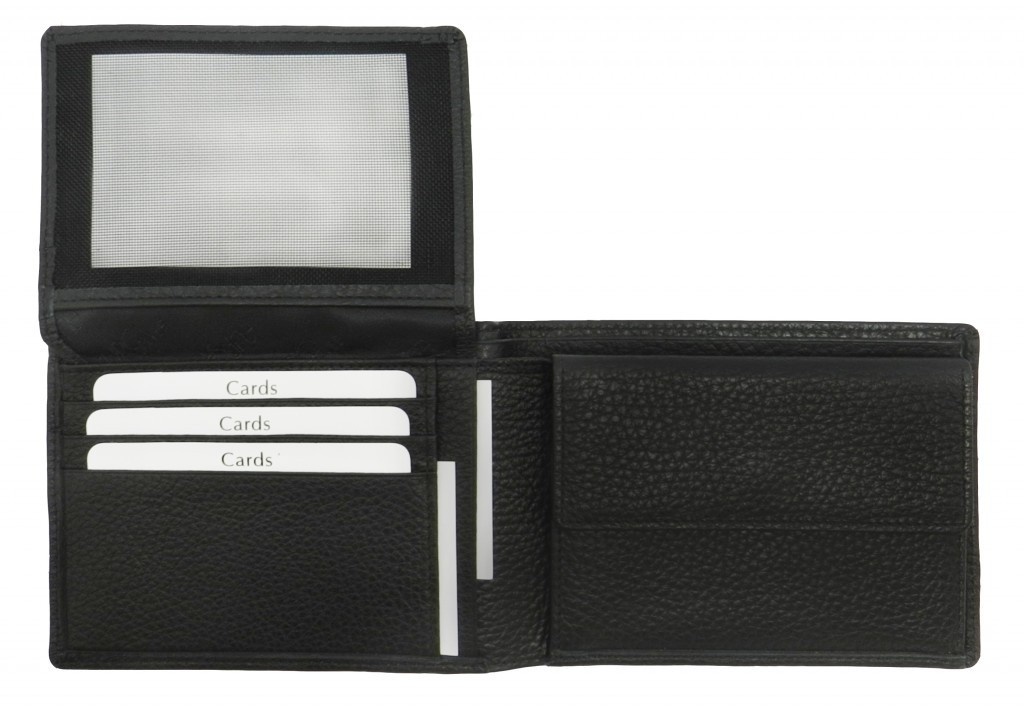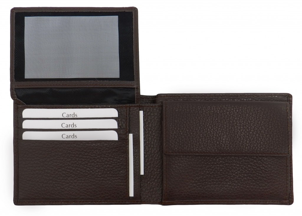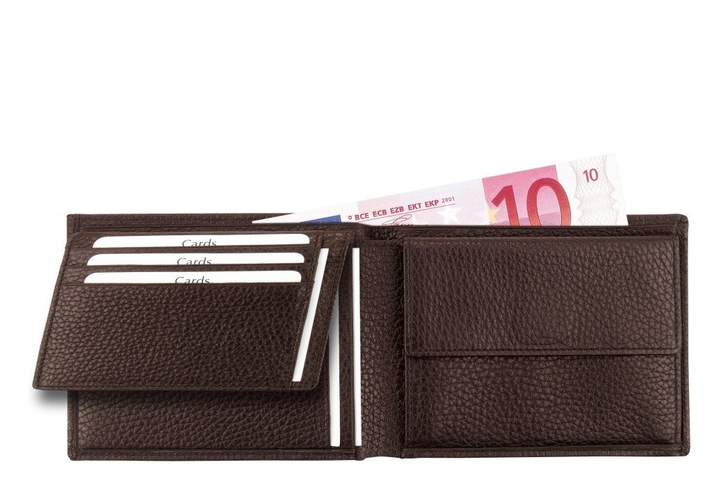 Deze compacte portemonnee met extra binnenvak is gemaakt van hoogwaardig rundleder en is verkrijgbaar in de kleuren zwart en donkerbruin. Er is een zichtvak voor uw ID-kaart, ruimte voor 9 pasjes, 2 briefgeld vakken en muntgeld.