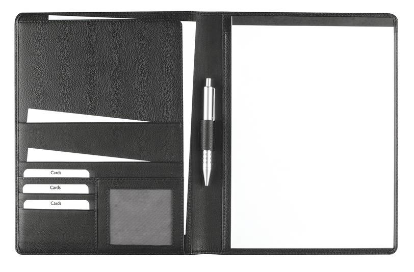 Een prachtige schrijfmap A4, gemaakt van een mooie kwaliteit runderleer. Geschikt voor een A4 schrijfblok, 3 kaarthouders, visitekaartjes, pennenhouder en diverse opbergmogelijkheden voor persoonlijke documenten. Schrijfmap wordt geleverd met gratis schrijfblok.